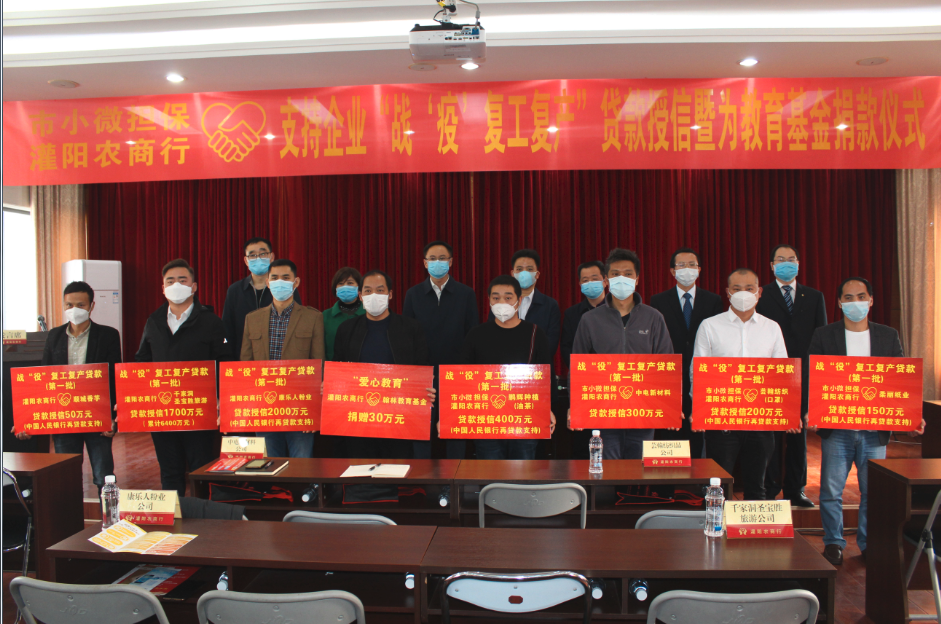 為“開足馬力”助推企業(yè)復(fù)工復(fù)產(chǎn)“加速度”,2月27日,小微擔(dān)保公司聯(lián)合灌陽農(nóng)商行召開支持企業(yè)“戰(zhàn)‘疫’復(fù)工復(fù)產(chǎn)”貸款授信暨為教育基金捐款儀式會(huì)議。會(huì)議現(xiàn)場(chǎng),桂林小微擔(dān)保公司攜手灌陽農(nóng)商行給予蕓翰紡織廠、中電新科材料、鵬輝種植、柔麗紙業(yè)等8家企業(yè)累積共計(jì)4800萬元的貸款授信額度,為復(fù)工復(fù)產(chǎn)企業(yè)注入了新的活力。