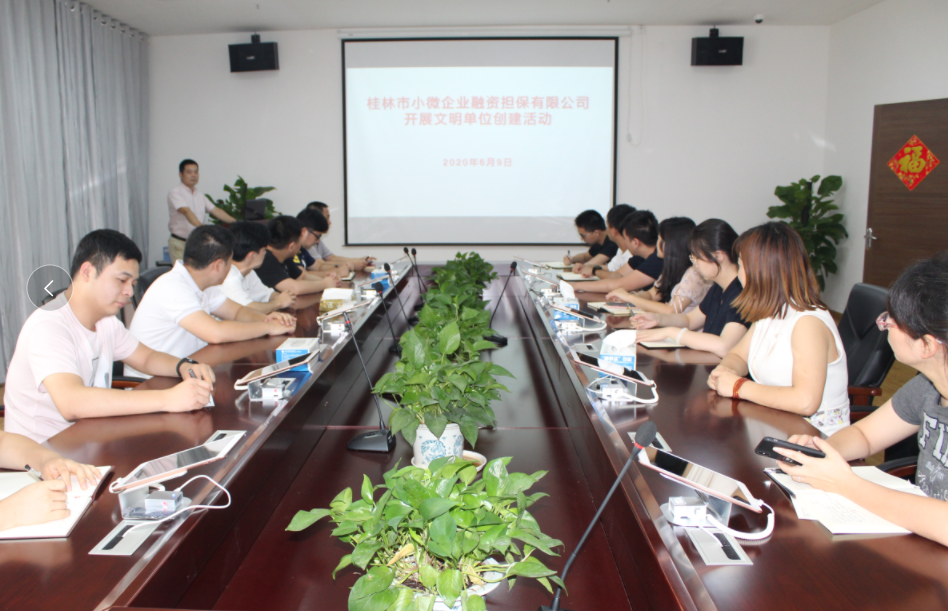 為深入推進(jìn)桂林市創(chuàng)建全國文明城市工作,進(jìn)一步增強(qiáng)廣大居民群眾的創(chuàng)建文明城的意識,2020年6月9日,桂林市小微企業(yè)融資擔(dān)保有限公司風(fēng)險總監(jiān)李道光一行前往桂林市青禾美邦置業(yè)有限公司開展“創(chuàng)文明城,做文明人”為主題的宣講活動。
