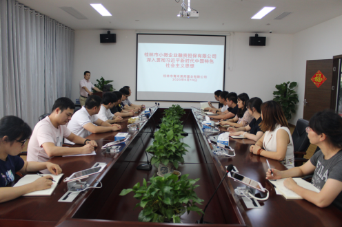 為進(jìn)一步學(xué)習(xí)宣傳貫徹習(xí)近平新時(shí)代中國特色社會主義思想,2020年6月9日,桂林小微擔(dān)保公司李道光一行前往桂林市青禾美邦置業(yè)有限公司開展“習(xí)近平新時(shí)代特色社會主義思想”為主題的宣講活動。